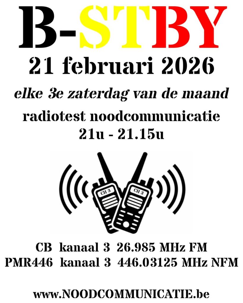 Vorige editie van onze B-STBY radiotest was een groot succes met héél wat deelnemers ( en vermoedelijk zelfs de meest actieve tot nu toe ! ) We hopen dat natuurlijk minstens te evenaren tijdens de volgende B-STBY nu zaterdag 21 februari, 21u-21.15u op kanaal 3.